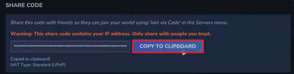 - Click Copy to Clipboard and send the share code to your friends.