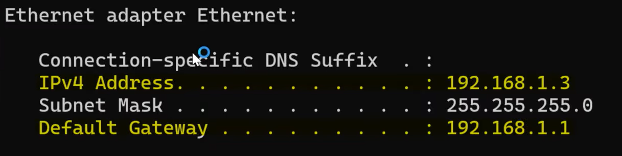 - Note down the IPv4 Address and Default Gateway.