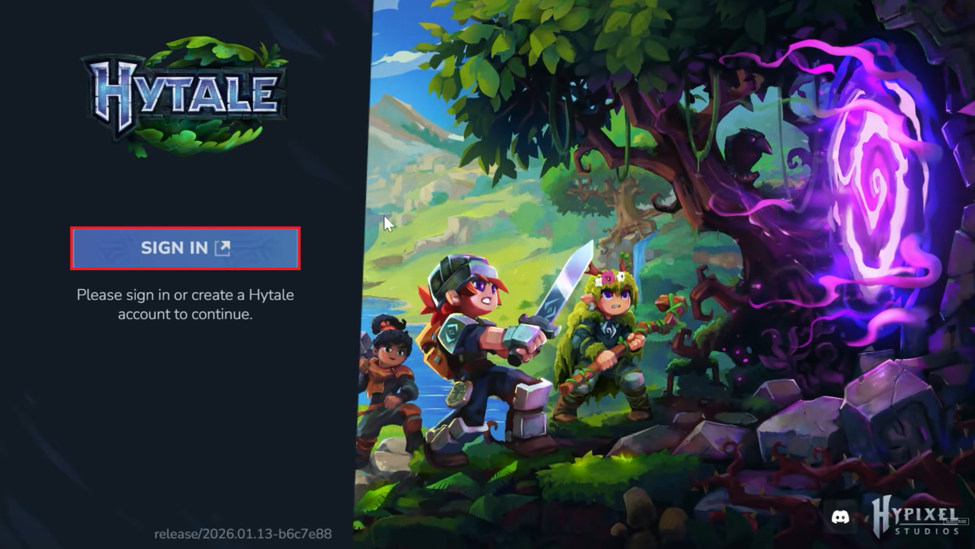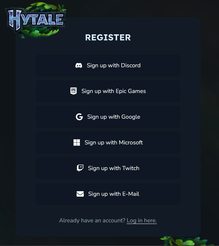 - Create a Hytale account or log in using your existing account on the official website.