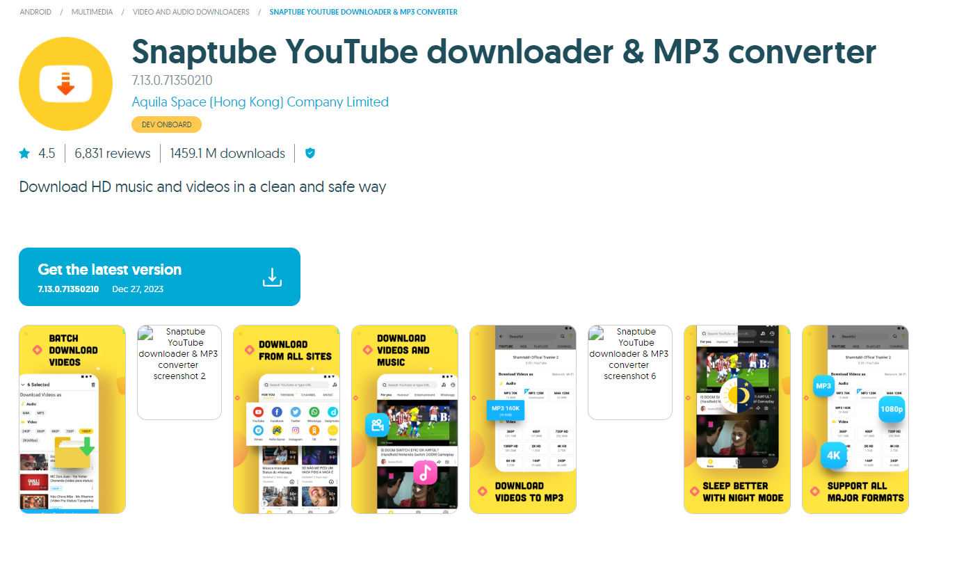With SnapTube, you can download videos for offline viewing. It offers various search and download quality options, helping to conserve space on your Android device.