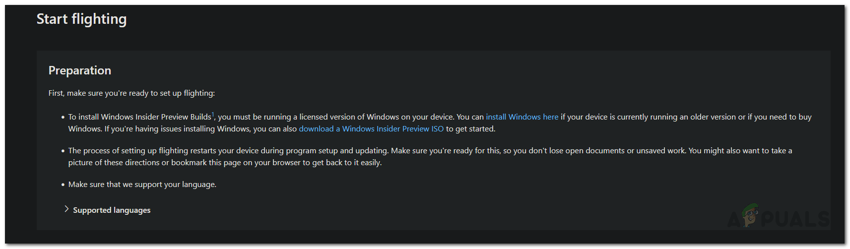 - First of all, open up a web browser of your choice and then head to the official Microsoft Windows Insider website by clicking here.