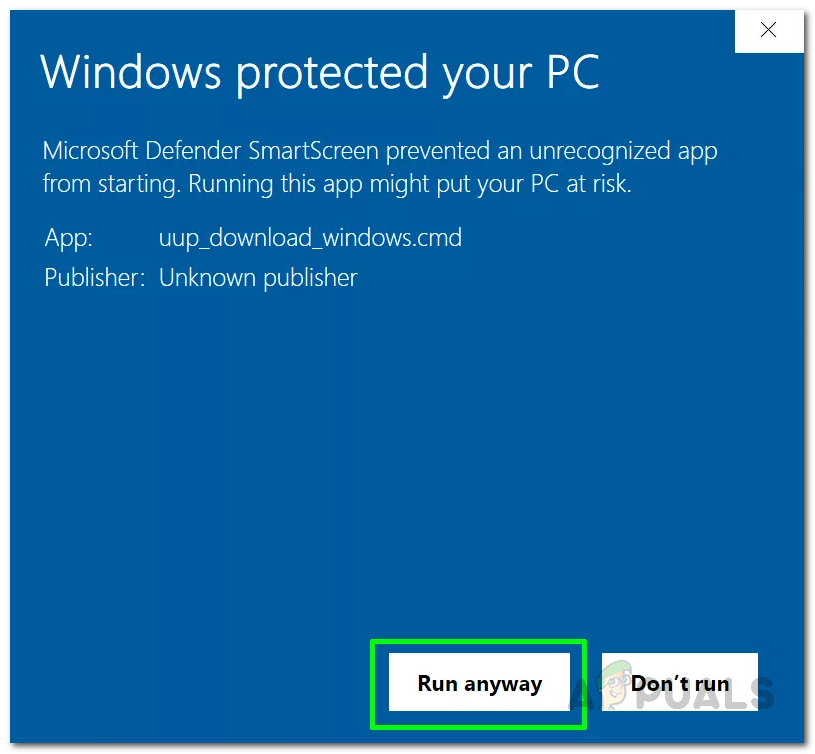Running Windows Downloader - If you are shown the Windows protected your PC dialog box, click the Run anyway option.