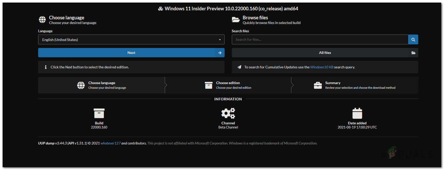 In case you don’t want to sign up for the Windows Insider Program, you can still download Windows 11 ISO via a third-party tool. Here, we will be using the UUP Dump website which allows you to download the latest updates to the Microsoft operating systems. The process is pretty simple. To give you an overview, we will be downloading Windows 11 files from the website which is essentially a batch file that will download Windows 11 ISO on your system once you run it.