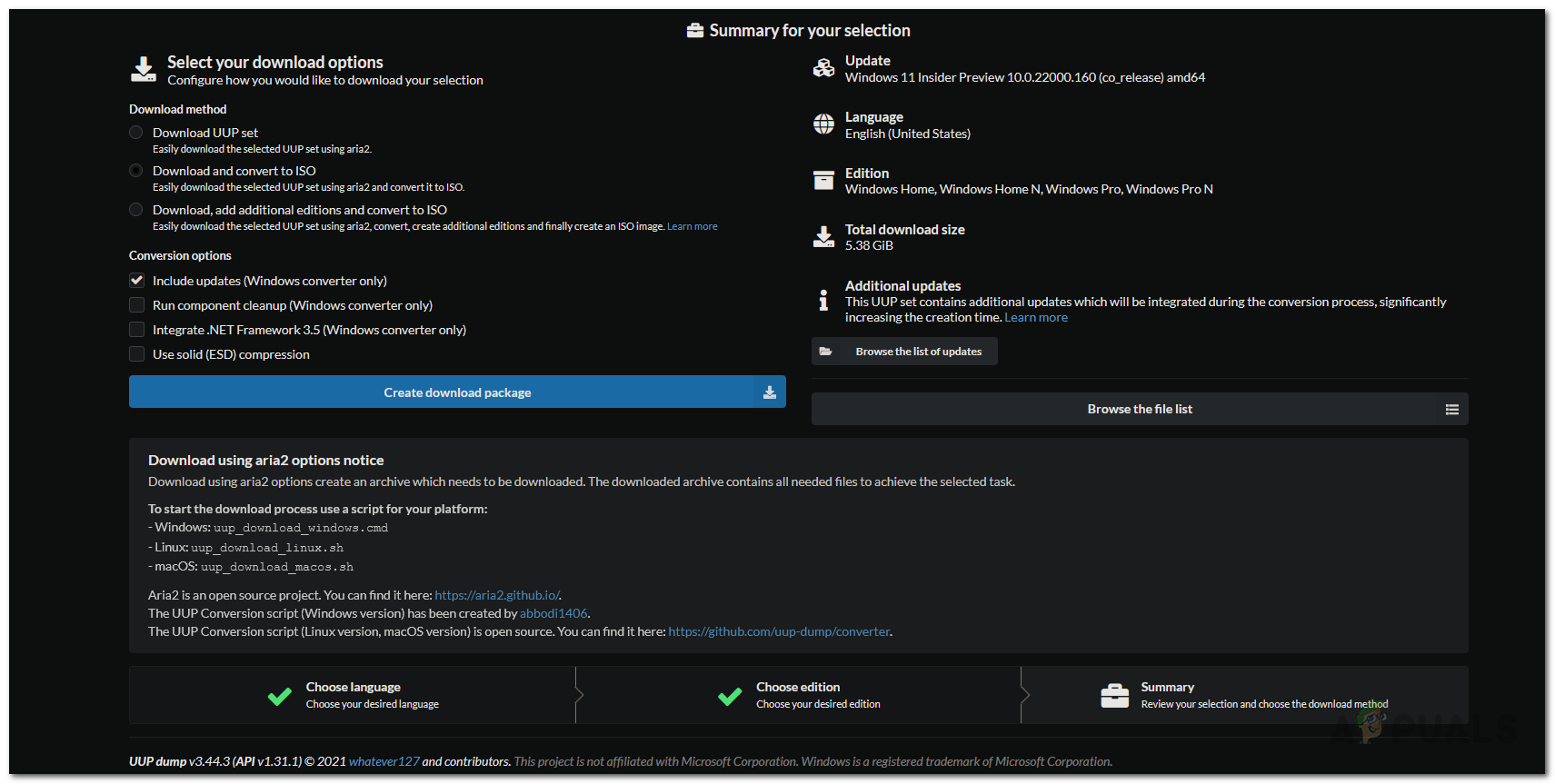 UUP Downloading Windows 11 Files - The process can take a while depending on your internet connection and speed so make sure to wait for it.