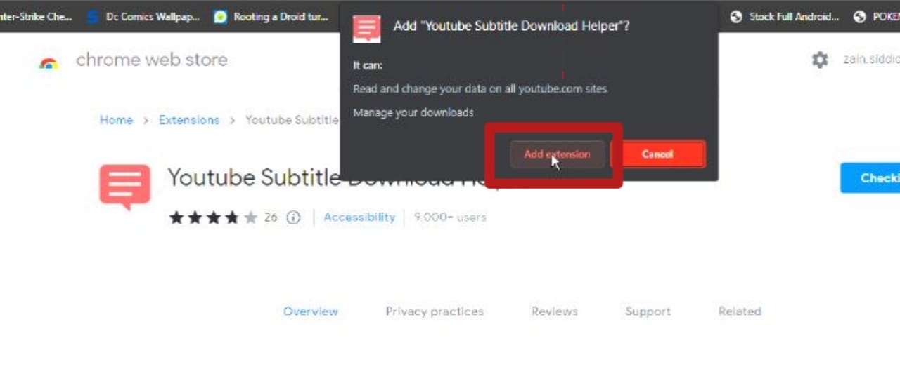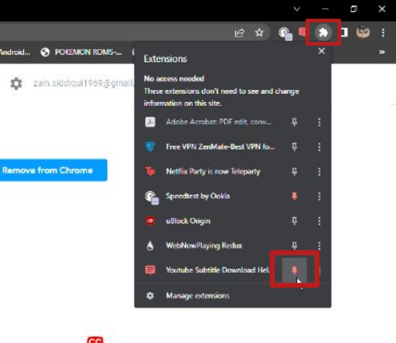 Select the ‘pin’ next to the extension you installed, in the puzzle piece drop-down menu - Now open the YouTube video whose subtitles you want. Once the video has loaded, click on the extension button you just pinned. A drop-down menu should appear asking for the file type for the subtitles, along with the language. Choose your desired settings and select ‘Download‘. It will be downloaded in a few seconds.