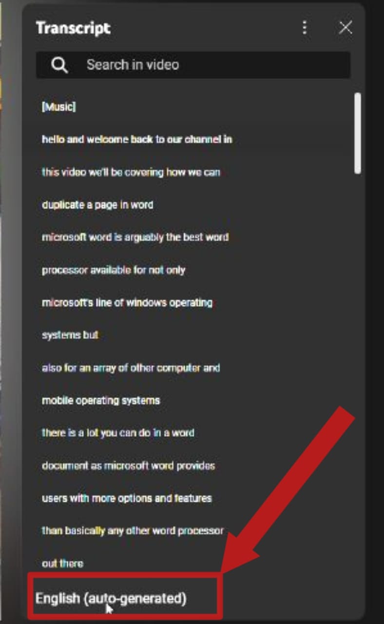 Click on the language near the bottom of the transcript. Options for multiple languages should appear if the video has subtitles in multiple languages - Now simply copy the transcript and paste it on to Notepad or anywhere you like and save it as a text file.