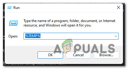 - Next, type ‘%temp%’ inside the text box and press Ctrl + Shift + Enter to open up the Temp directory of your Window installation.