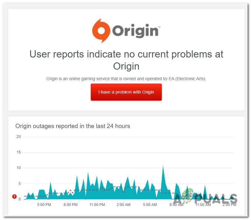 - Ongoing Origin server issue – It’s not uncommon to face this type of issue due to an Origin server problem that is entirely beyond your control. If every game download you initiate triggers the same behavior, you should take the time to investigate if other users in your area are currently dealing with the same type of issues.
