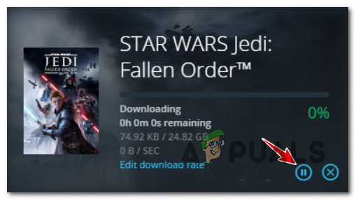 After the download is stopped, wait for a full minute before clicking on the pause button once again to resume the download.