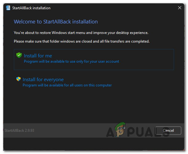 - After the download is complete, double-click on the StartAllBack executable that you’ve just downloaded and click Yes at the User Account Control prompt to grant admin access.