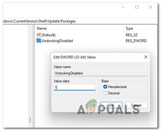 Modifying the value data of UndockingDisabled - Close the elevated Registry Editor window and reboot your PC before seeing if this method has been successful.