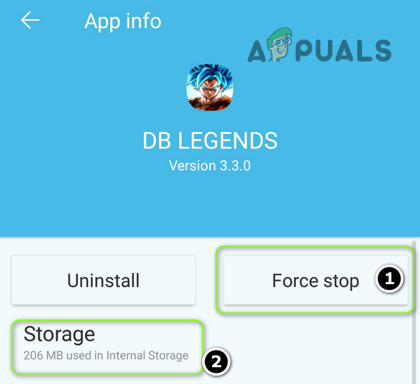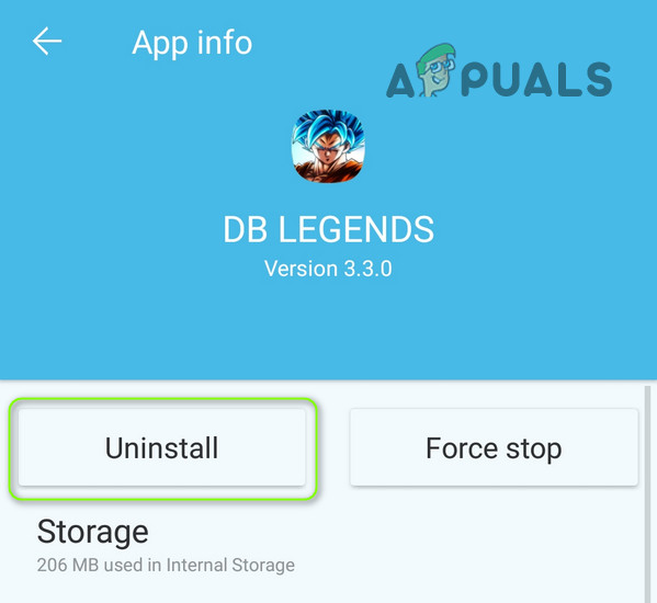 - If not, then open the DB Legends in the Apps settings of your phone (once again, make sure to clear cache and data of the DB Legends app) and tap on the Uninstall button.