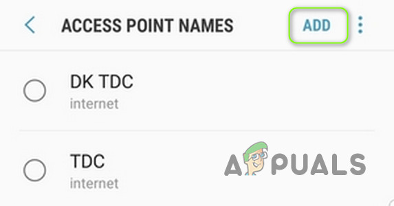 Open Access Point Names in Mobile Networks - Then hit the back button and click on Add.