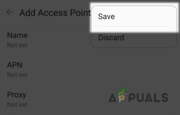 Save Your New Access Point Name - Now select the newly created APN entry and wait for disconnection/connection of the mobile data.