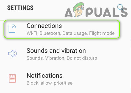 - Launch the Settings of your Samsung phone and open Connections.
