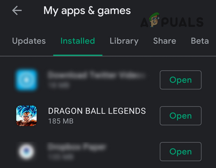 Open My Apps & Games - Then open Dragon Ball Legends (for convenience, you may sort the apps in alphabetical order) and tap on the Update button (if an update of the app is available).