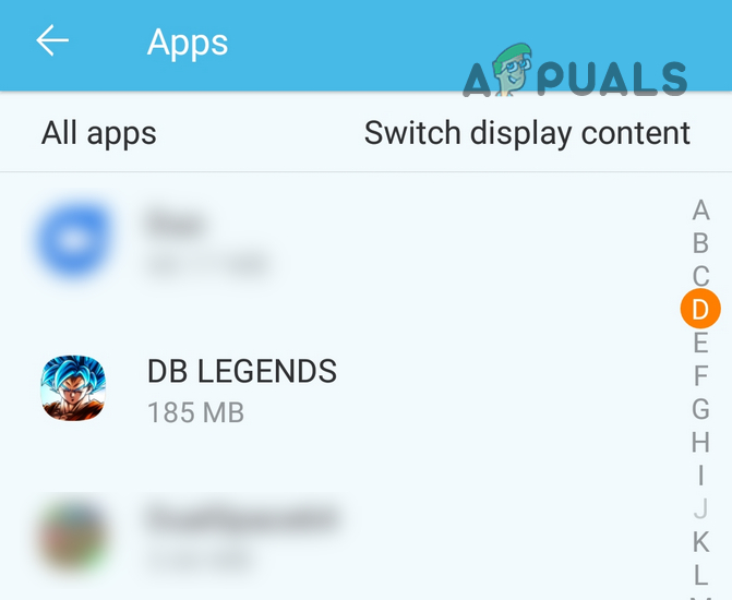 Open Apps in the Android Phone’s Settings - Now open DB Legends and tap on Force Stop.