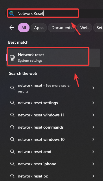 - Open the Start Menu and type Network Reset.