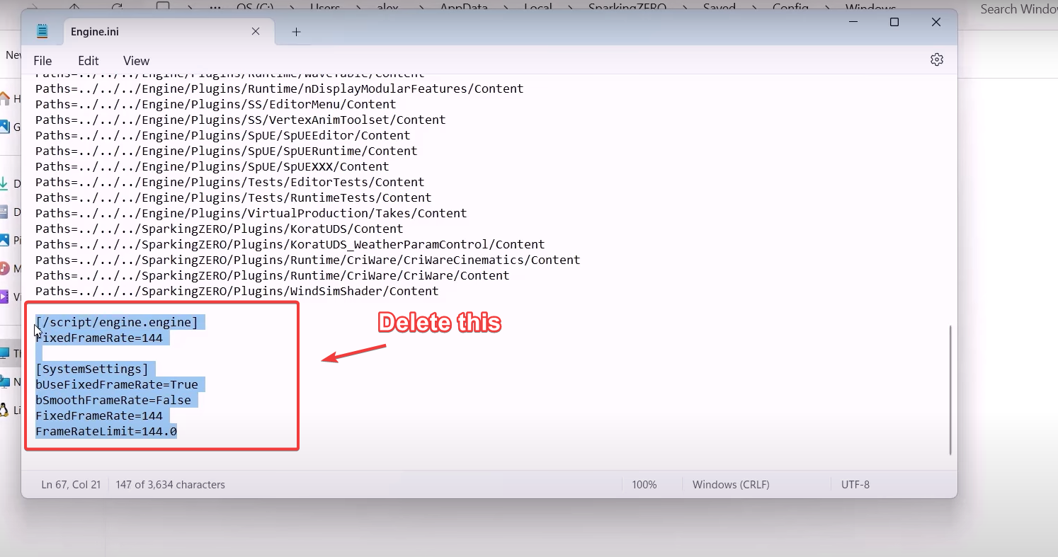 - Navigate to Local > SparkingZero > Saved > Config > Windows and open the Engine file.