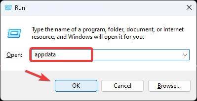 - Enter Appdata in the input box and click OK to open the AppData folder.