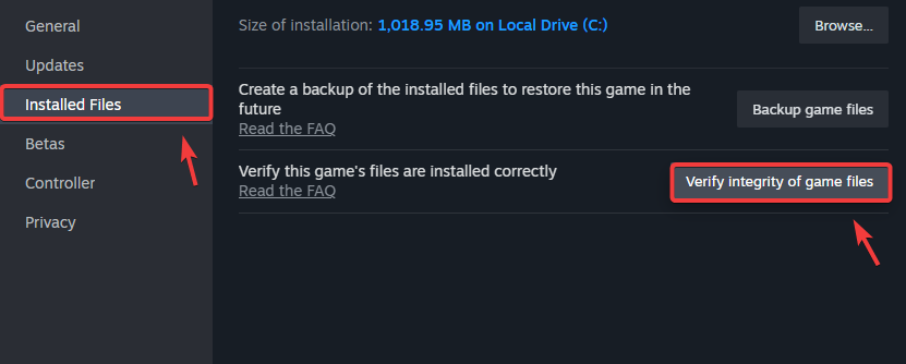 - Click Verify integrity of game files and wait for the verification to be completed.