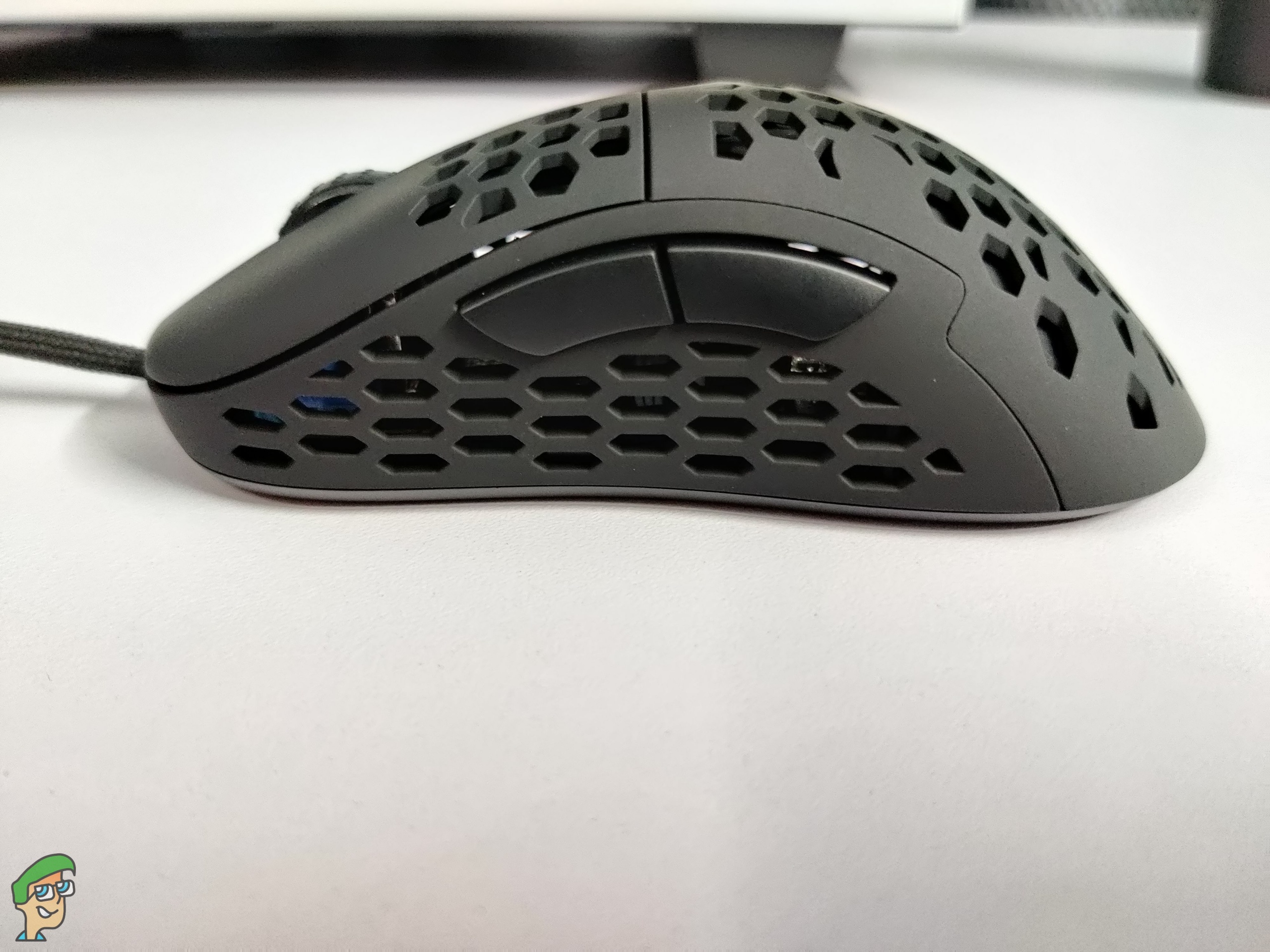 Furthermore, the thumb rest also feels comfortable, and it is in a perfect position. The honeycomb pattern doesn’t interfere with the button area, so it feels appropriate in the hand. However, the left and the right side does have a honeycomb pattern. Surprisingly, this doesn’t interfere with comfort at all.
