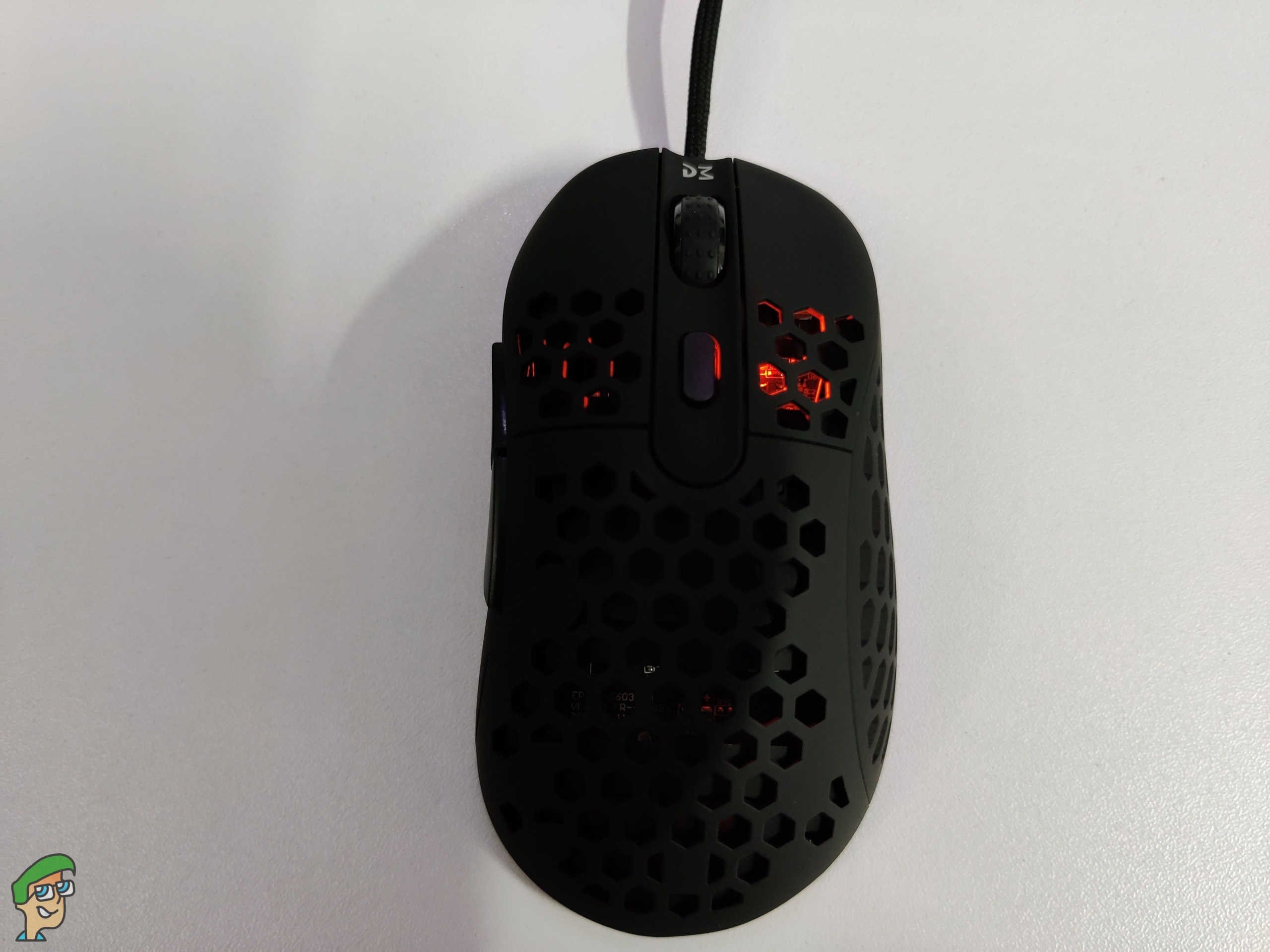One of the more unique aspects of this mouse is the shape, and we’ll talk about that along with the comfort and grip style later on. For now, we are taking a quick look at the design language and overall build quality. Aesthetically speaking, Dream Machines utilizes a modern design here. Visually, it is quite similar to other mice that have a honeycomb design.