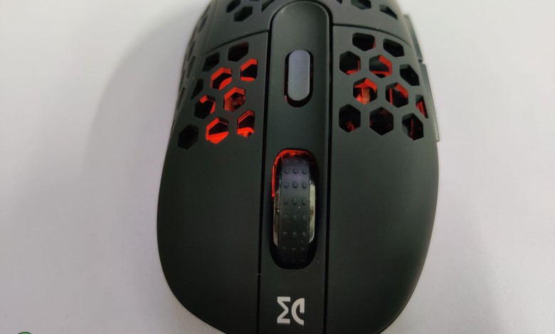 Like other lightweight ergonomic mice, this one has a small hump in the center rather than in the rear. This gradual slope indicates that this is suited for fans of the ergo shape. Other than that, we have side buttons only on the left side, and a DPI button below the scroll wheel. Before we move on, it’s important to mention that this mouse is built like a tank. It doesn’t have any weak points and feels well built all around.