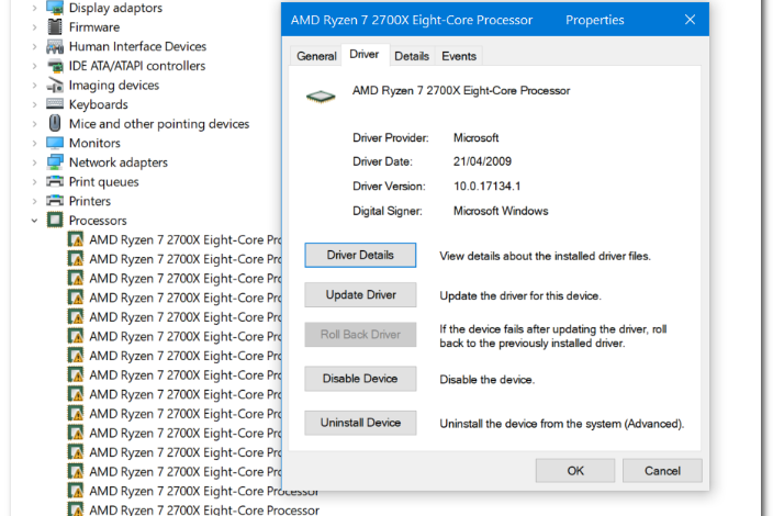 Some Windows 10 users with certain Ryzen processor models (particularly with Ryzen 2700x) have discovered that the Device Manager utility shows a warning error for each of the core processors showing under Processors. The error message associated with this issue is “A driver (service) for this device has been disabled. An alternative driver may be providing this functionality. (Code 32)”