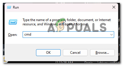 - Next, type ‘cmd’ inside the text box, then press Ctrl + Shift + Enter to open up an elevated Command Prompt.