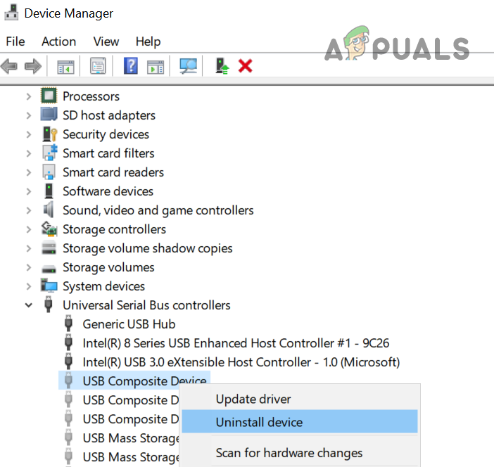 - A list of USB controller drivers will appear next. Right-click each one and select Uninstall until all of them have been removed.