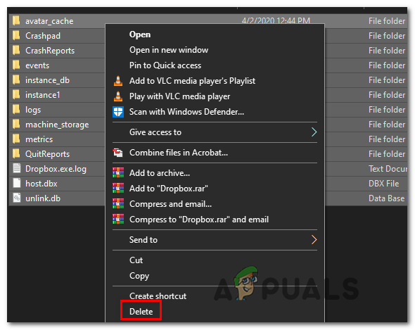 If these two fixes aren’t effective, you should start to consider a corruption issue. If this scenario is applicable, perform a manual uninstall or delete every Dropbox file manually to fix the problem in this case.