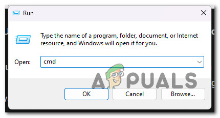 - Next, type ‘cmd’ inside the Run dialog box and press Ctrl + Shift + Enter to open up an elevated CMD prompt.