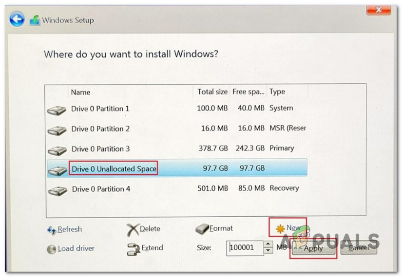 Once you manage to create the new partition for Windows 11, make sure it’s selected before you click on Next and follow the remaining instructions.