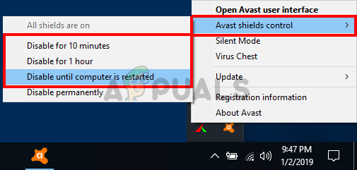 But before you do that, you should start by manually disabling the real-time protection in your AV settings and seeing if this fixes the issue. Typically, you can do this directly from the tray bar menu by right-clicking on the icon associated with your antivirus.