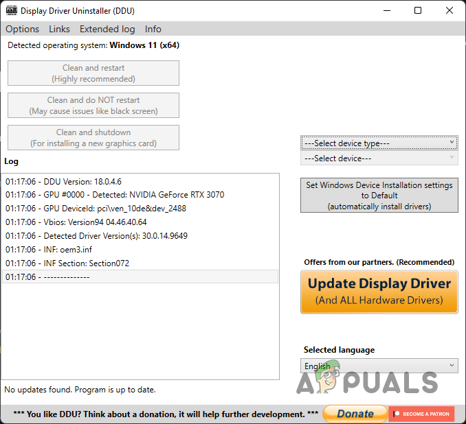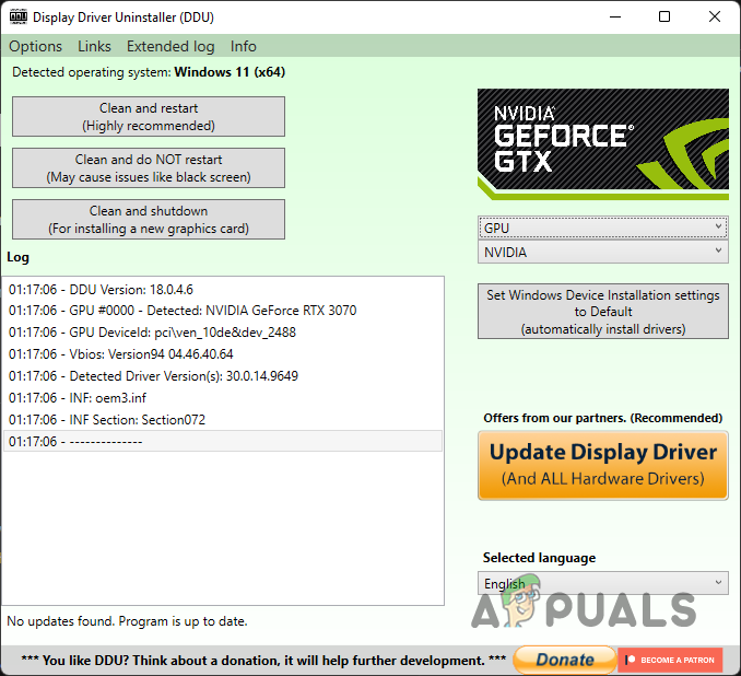 Therefore, if this case is applicable, you can easily resolve the issue by simply reinstalling the graphics drivers on your computer. The process here is slightly different than your usual reinstall of graphics drivers as we will be performing a clean install. For this purpose, a third party utility called Display Driver Uninstaller or DDU will be used to completely get rid of any display driver files on your computer. All of this will be done in Safe Mode which is recommended by the utility’s developer itself. Safe Mode essentially starts your computer with only the required services running in the background so that nothing can interfere with the DDU process. To do all of this, follow the instructions that have been given down below: