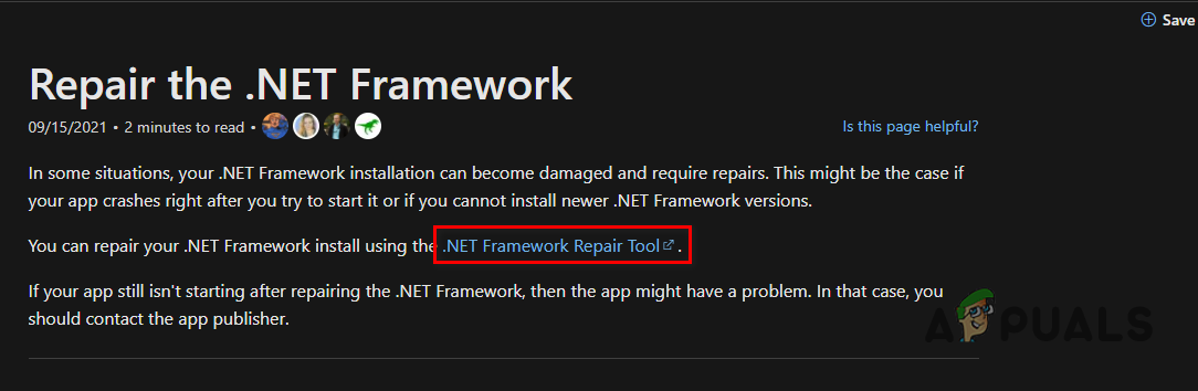 - On the web page, click on the .NET Framework Repair Tool hyperlink provided to download the utility.