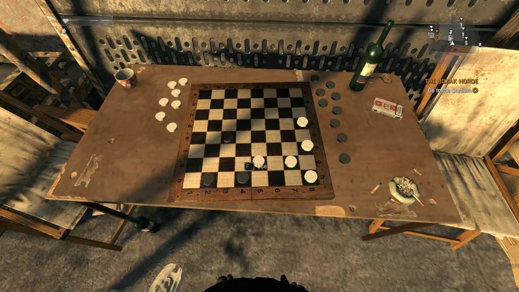 This is another fun interactable easter egg in which players get to play checkers with a secret person. Go to the rooftop of the tower and then go around the tower. You will find a checkerboard that can be interacted with.