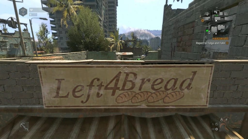 When the prologue is completed and you receive a safe house which is a compound area. Near that safe house is a shop with a name that says “Left 4 Bread”. A clear reference to the game Left 4 Dead.
