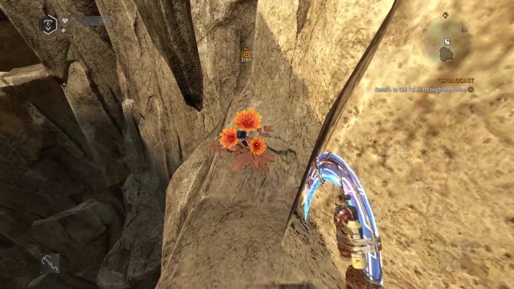 During the mission broadcast when you have stopped the bombing from happening you can choose a zip line to go from the tower and towards a rocky terrain. On that terrain go forward and then climb a small wall then move to the right until you see a toxic lichen underneath you.