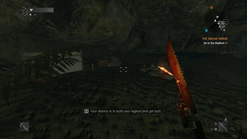 You can enter the cave by going in a well-shaped hole and swim underwater from where you will arrive in the cave. There will be a few dead bodies there and some plants. After a few moments, a message will pop up saying “Your destiny is to build your legend (and get loot).”