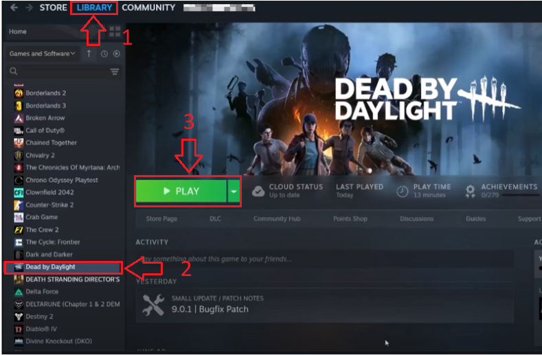 - Find Dead by Daylight in your Library.
