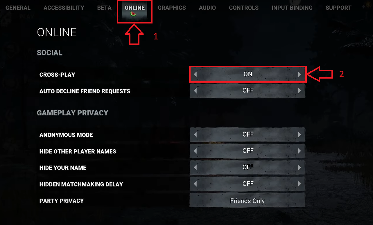 - Navigate to the Online tab and switch Cross-Play to ON.