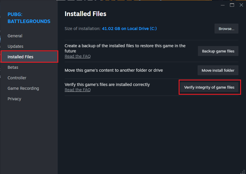- Go to the Installed Files tab and click Verify integrity of game files.
