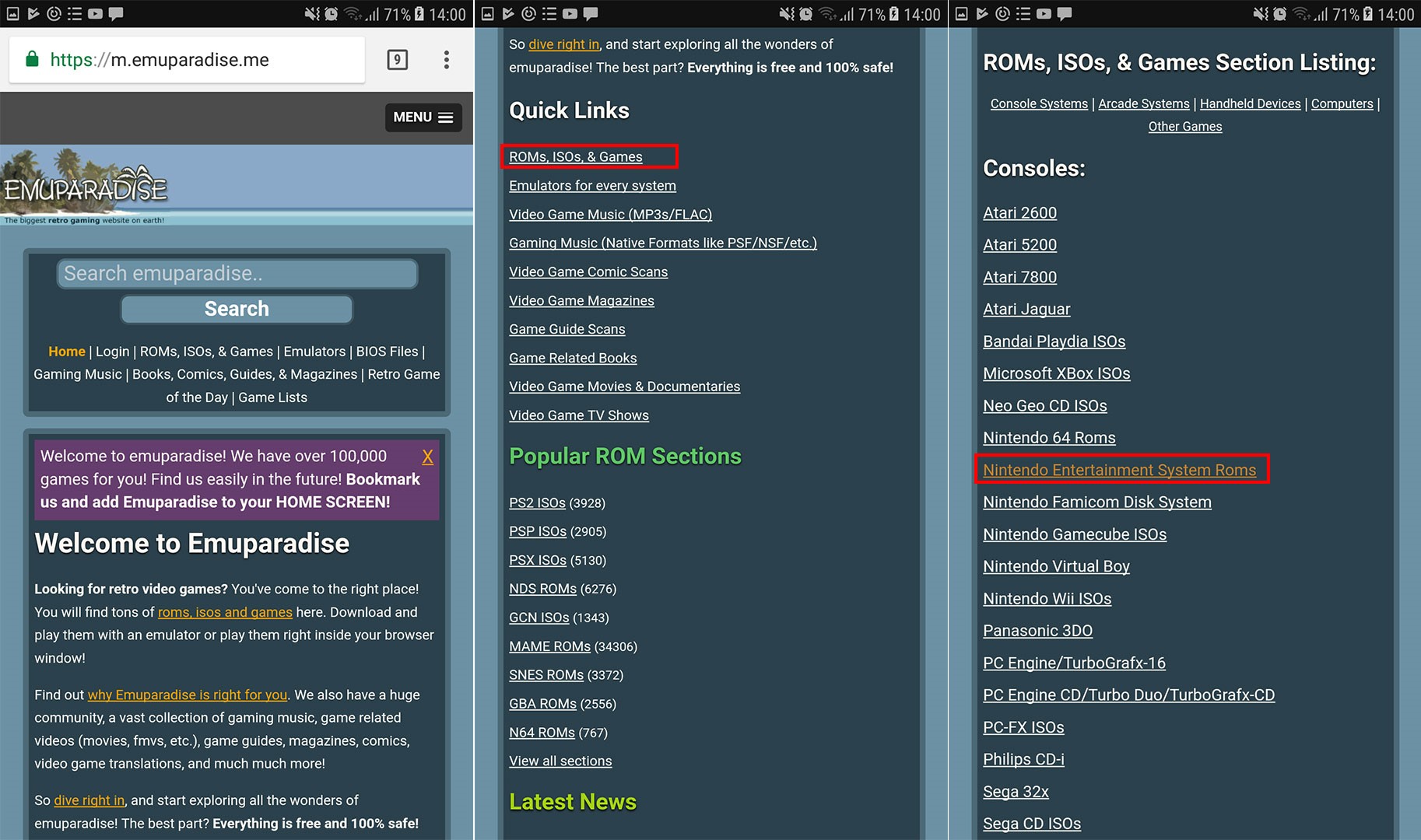 The site is called emuparadise.me and even it appears confusing, at first sight, you will love it. After you entered the site, scroll down to the Quick Links section and click on the ROMs, ISOs & Games link. Next, scroll down to the Nintendo Entertainment System Roms and click on it.