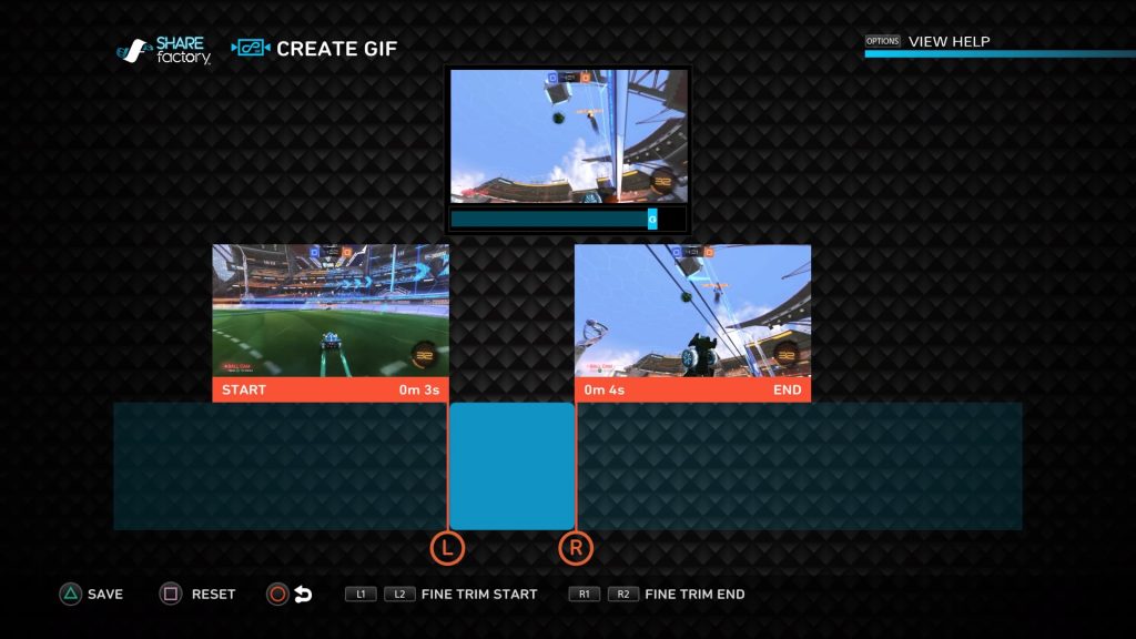 Once you’re into the GIF editor, position the cursor to where you want the GIF to start. Now press the X button to prepare the GIF. The app will automatically grab a 9-second loop capture from your starting point. You can then use the left and right sticks to trim from both ends until you’re satisfied with the results. At this point, all that’s left to do is hit the triangle button to render your GIF. Once that’s over, you will be prompted to share it – even if you decide to share it later, it will be saved in your gallery as a GIF.