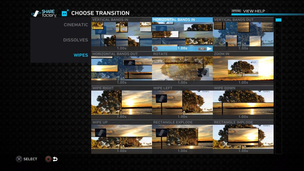 In order to be able to select from various transition animations, you need to position the cursor in between the two clips. Once the cursor is in place, press the X button and select Add Transition. Next, you’ll be presented with a list of transitions orders in 3 main categories. Keep in mind that this list will get considerably bigger if you already downloaded a lot of custom themes. In any case, highlight a theme and use the X button to select it. In the event that you don’t end up linking the transition, you can select it with the cursor, press the square button and select Edit Transition.