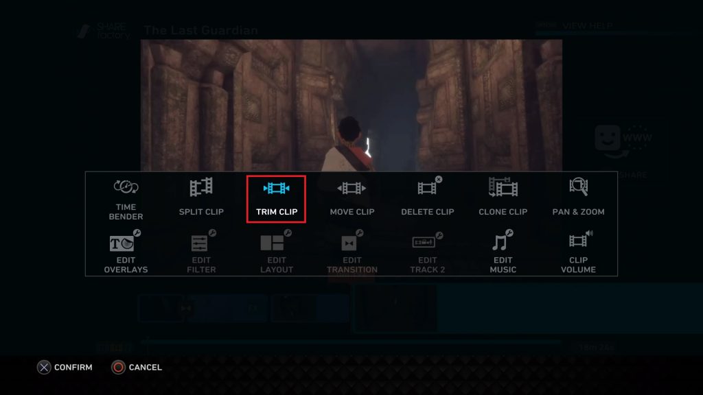 From there, select Trim Clip and use the left and right sticks to remove the excess parts you don’t want. Once you’re happy with your trimming, hit the X button to confirm.