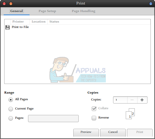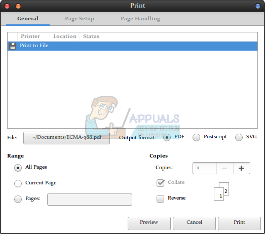 That method involves by far the least amount of playing around, but if you don’t mind a bit more mousing then there is another way you can do this without needing to install additional software. Open your XPS file in the Evince document viewer if you have it, or one of the others if you’re on a QT or KDE based system. Once you’re there, select File and then Print or hold down the Ctrl key and push P.