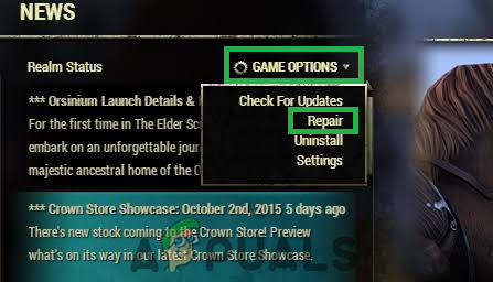 It is possible that the ESO launcher has been glitched due to which this issue is being encountered. Therefore, in this step, we will be repairing the launcher. For that: